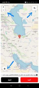در بالای نقشه عکس ذره بین را داریم که میتوانید آدرس را تایپ کنید تا مسیرها را پیدا کند و با زوم روی نقشه محل کار خود را ثبت کنید